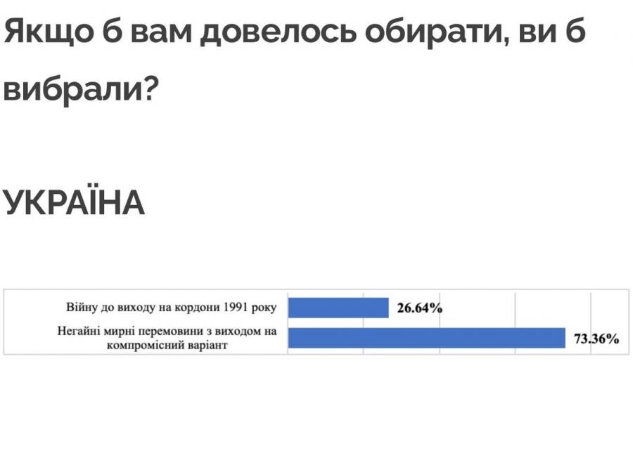Большинство украинцев выступают за немедленные мирные переговоры Большинство украинцев выступают за немедленные мирные переговоры